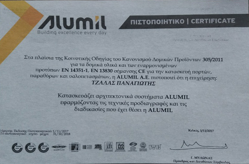 ΠΙΣΤΟΠΟΙΗΤΙΚΟ ALUMIL