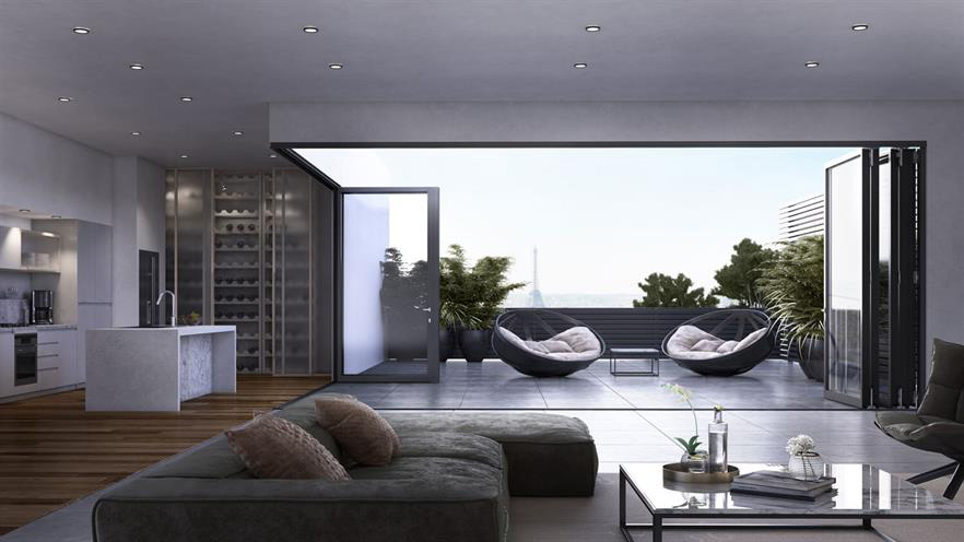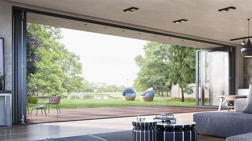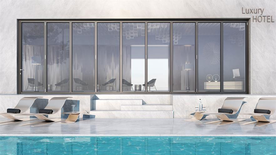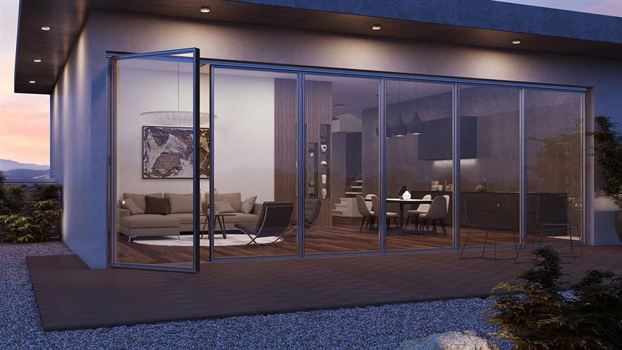 Κορυφαίο σύστημα πτυσσόμενης πόρτας (φυσούνα) με λειτουργία κάτω κύλισης, το οποίο συνδυάζει minimal αισθητική με εξαιρετική απόδοση, πολύ μεγάλες διαστάσεις με κυριολεκτικά ελάχιστο εμφανές αλουμίνιο, αντιδιαρρηκτική προστασία και ευρύτατη ποικιλία λύσεων.